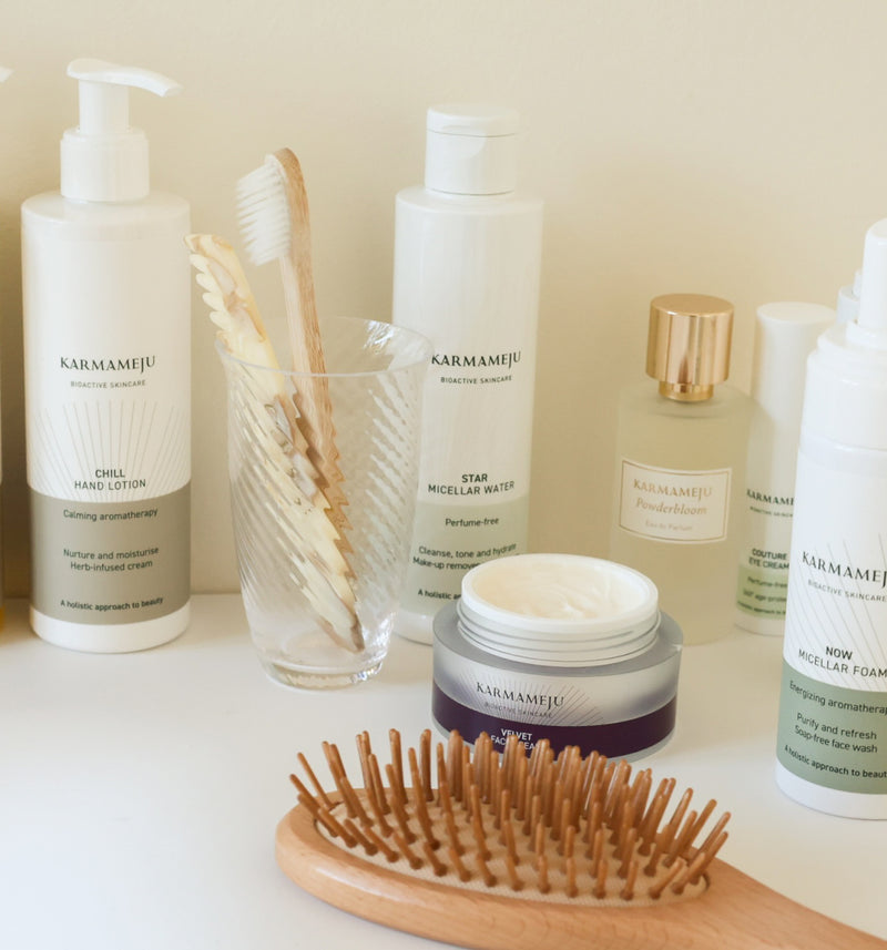 Karmameju uses clinically documented ingredients and bioactive plant oils and extracts specifically selected for the skin-enhancing purpose of each product. These ingredients are your guarantee for optimal efficacy and visible results.
