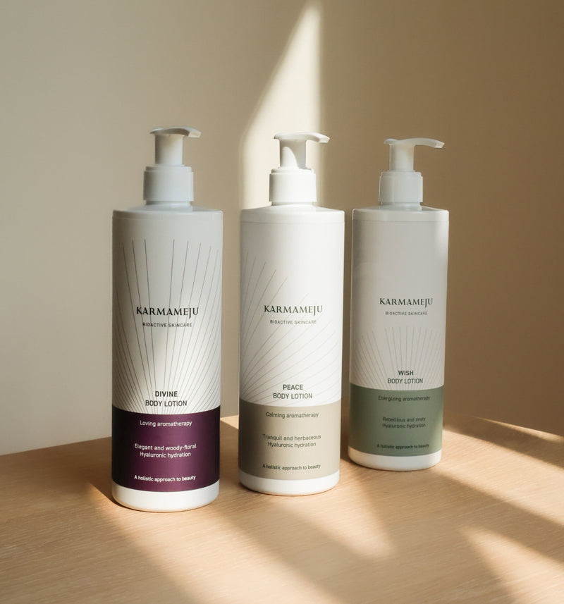 Karmameju's body care is formulated with ultra-nourishing plant oils, plant extracts, and clinically documented bioactive ingredients that leave the skin moisturised and full of vitality.